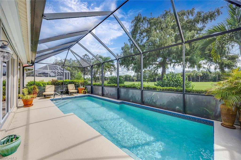 Enjoy refined Florida living in this three-bedroom, two-bath residence, ideally on the 8th fairway of Worthington Country Club. Designed to capture the southern exposure and expansive golf course views, the home features a private pool and a granite kitchen enhanced by a decorative tile backsplash. Crown molding and plantation shutters accentuate the interior, while tile flooring flows throughout the main living spaces. Additional features include electric hurricane shutters enclosing the whole home and a whole-home generator. A spacious two-car garage adds everyday convenience. Worthington Country Club offers an active lifestyle with access to an 18-hole championship golf course, five Har-Tru tennis courts, a well-appointed clubhouse offering elegant dining, a state-of-the-art fitness center, a resort-style pool and a poolside cabana. All conveniently near Bonita Beach, Southwest Florida International Airport, and premier shopping and dining venues. Next door, an exciting new development, Bonita Midtown is set to open in 2026 with new dining and retail. Club enhancements are in progress, including five new tennis courts, four pickleball courts and a new indoor-outdoor cabana featuring an electric pergola, with no special assessment to property owners.