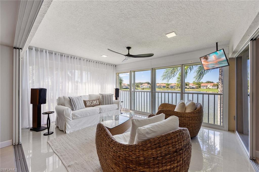 Now Fully Furnished including the Golf Cart! Immediate Full Golf Membership Included - No Waitlist! An elegantly appointed carriage home showcasing the Winchester model. Every detail has been thoughtfully elevated through recent upgrades. The interior is graced with porcelain tile flooring throughout, seamlessly connecting each space. The kitchen highlights updated cabinetry, granite countertops, and tile backsplash, and newer kitchen appliances. Both baths have been remodeled with contemporary finishes and fixtures. Additional features included newer HVAC (2021) and water heater (2024). An enclosed lanai with acrylic shutters extends the main living area, enhancing the sense of openness and flow, while offering lake views framed by northern exposure. This added square footage supports a flexible indoor-outdoor lifestyle, unique to this residence. Nearby, residents enjoy exclusive access to the private pool, tennis and pickleball courts reserved for Wedgewood Fountain owners. Worthington Country Club offers an active lifestyle with access to an 18-hole championship golf course, five Har-Tru tennis courts, a well-appointed clubhouse offering elegant dining, a state-of-the-art fitness center, a resort-style pool and a poolside cabana. All conveniently near Bonita Beach, Southwest Florida International Airport, and premier shopping and dining venues. Next door an exciting new development, Bonita Mid-town is set to open in 2026 with new dining and retail. Club enhancements are in progress, including five new tennis courts, four pickleball courts, and a new indoor-outdoor cabana featuring an electric pergola, with no special assessment to property owners.